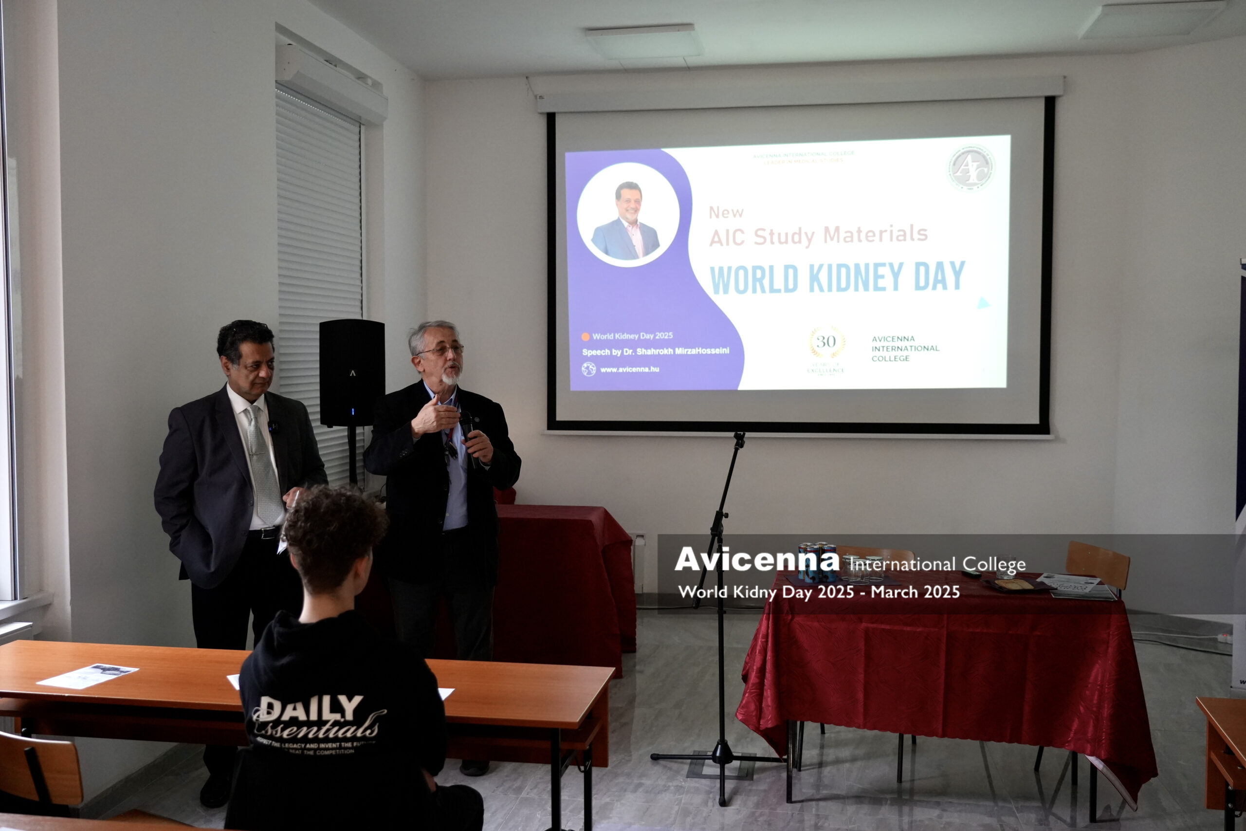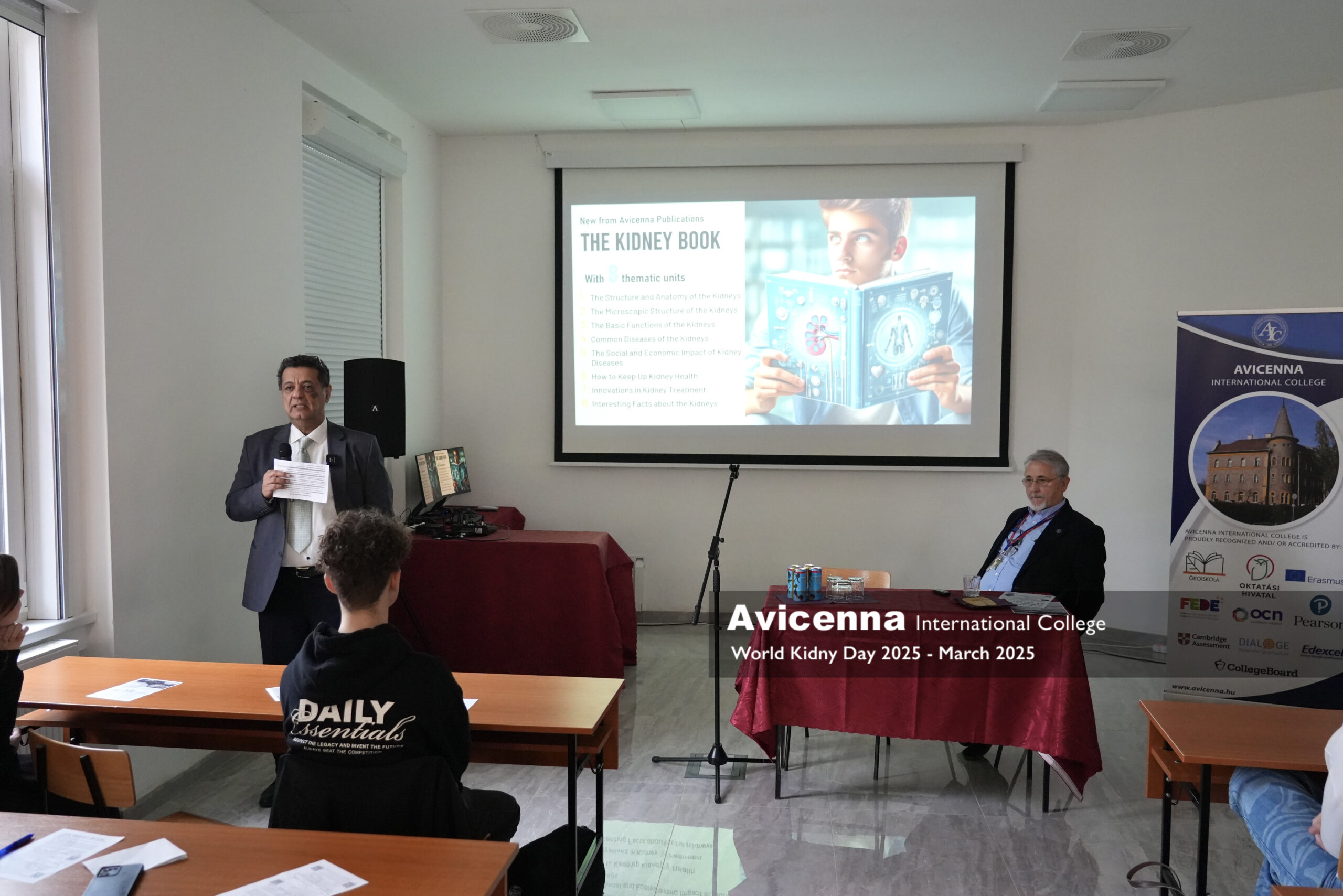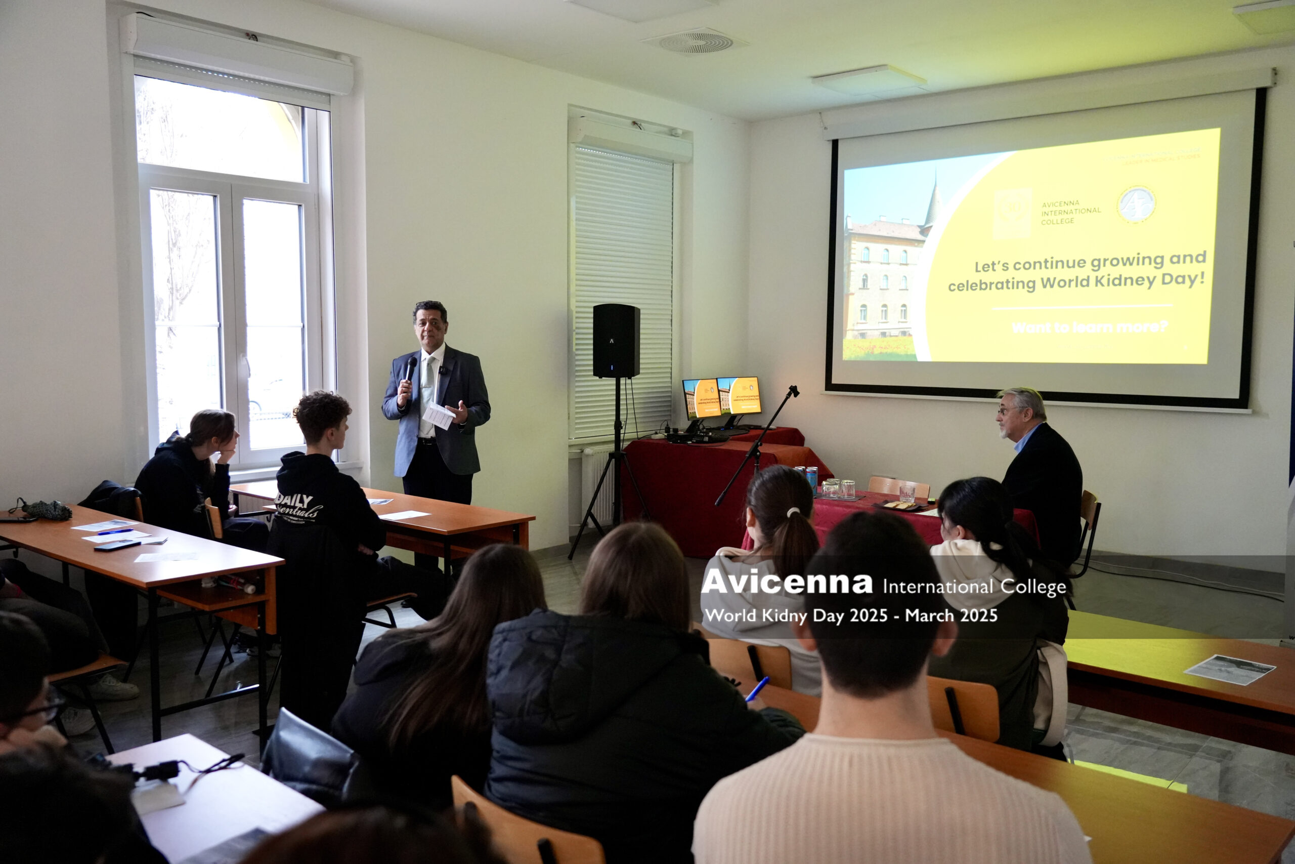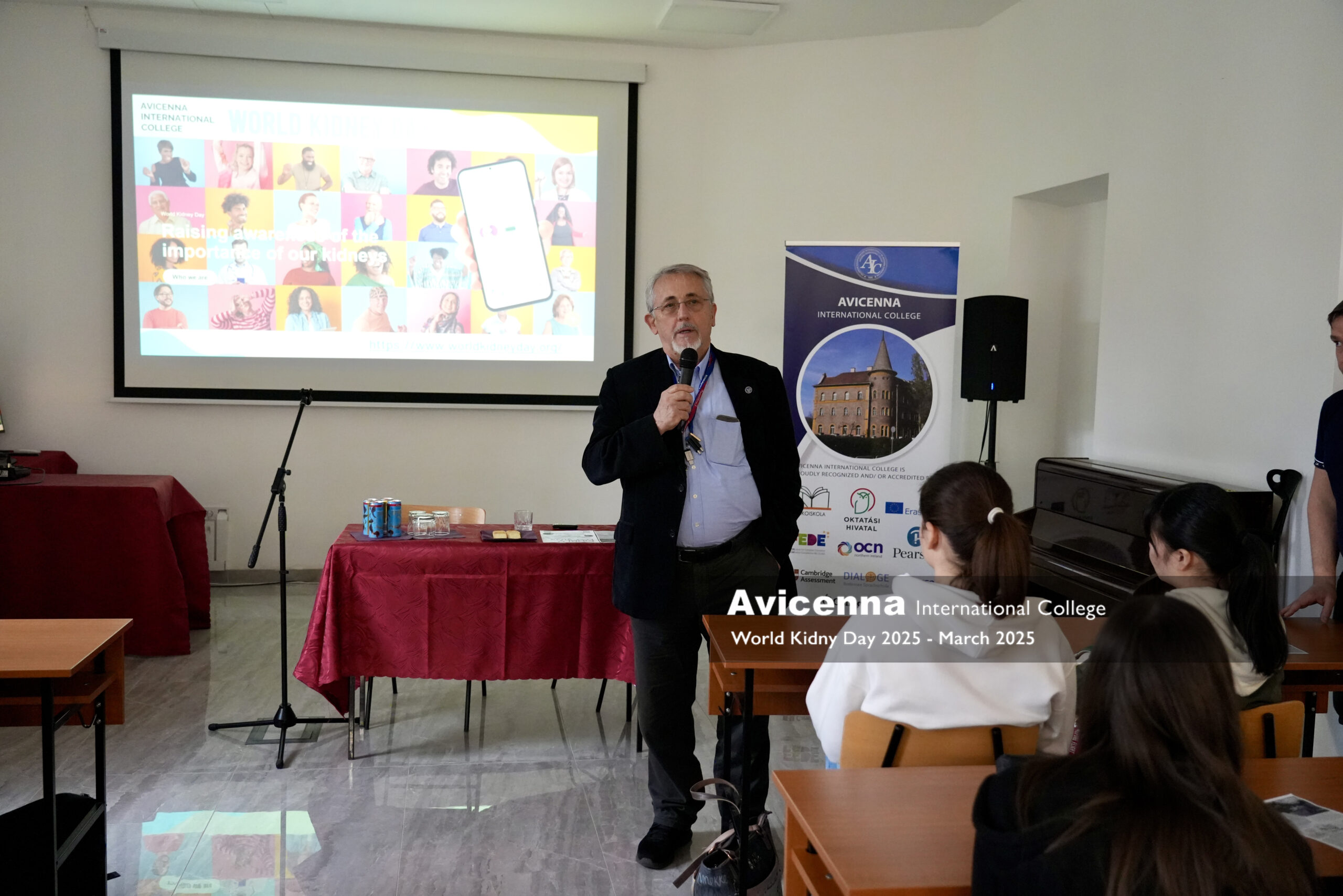 To mark World Kidney Day (WKD), Avicenna International College (AIC) hosted a special event focused on kidney health and education. Students had the opportunity to listen to Dr. László Rosivall, Professor Emeritus of Semmelweis University and founder of the Hungarian Kidney Foundation. In his engaging presentation, Dr. Rosivall highlighted key discoveries in contemporary kidney research and shared a personal story about how he proposed the idea of WKD to the International Society of Nephrology, making this global awareness day a reality.