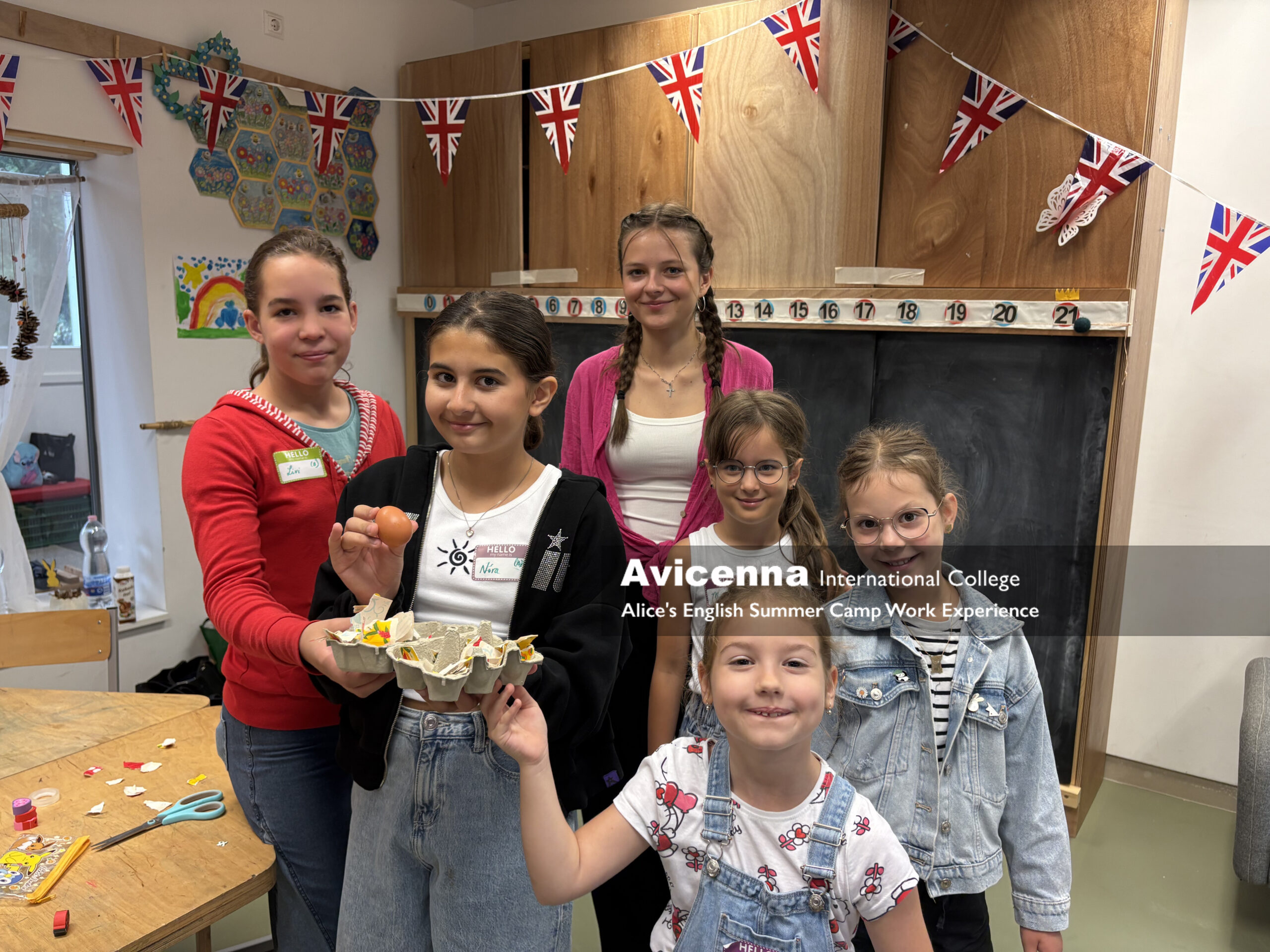 This summer, Alice Callender, one of our former native English and English Civilisation teachers, organised her own English summer camp based in the beautiful location of Nagykovácsi. Five of our Avicenna Grade 11 students, Dalibor, Margo, Grácia, Setayesh and Karim, signed up to support her on this project and were absolutely fantastic in making the camp a huge success (especially when a huge storm hit the first day of camp and they needed to have a “rain check” on the outdoor scavenger hunt!).