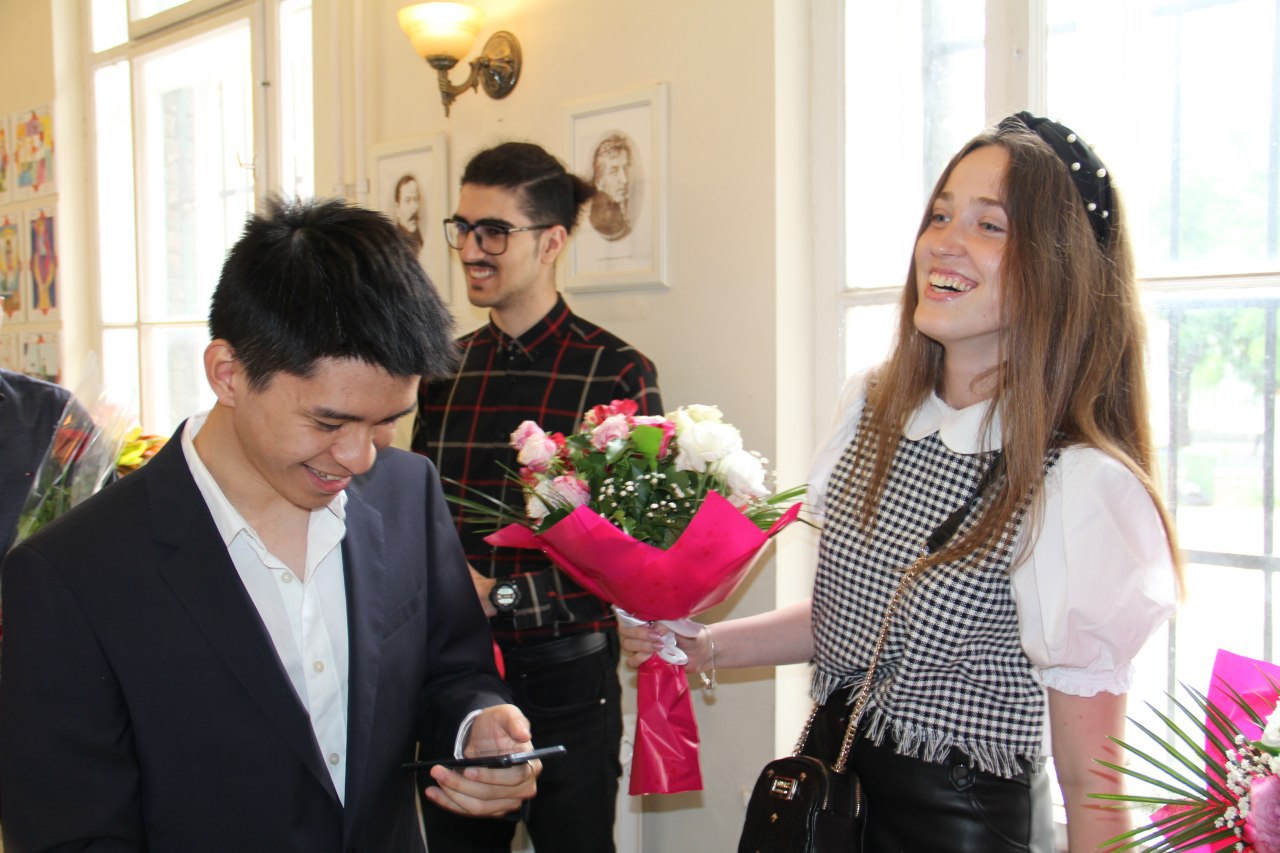 The final exam of the German language course at Avicenna International College on 27. May 2020. Students and teachers take precautions against Coronavirus. Abschlussprüfung des Deutschkurses in Avicenna International College am 27. Mai 2020. Die StudentInnen und LehrerInnen nehmen Vorsichtsmaßnahmen gegen Coronavirus.