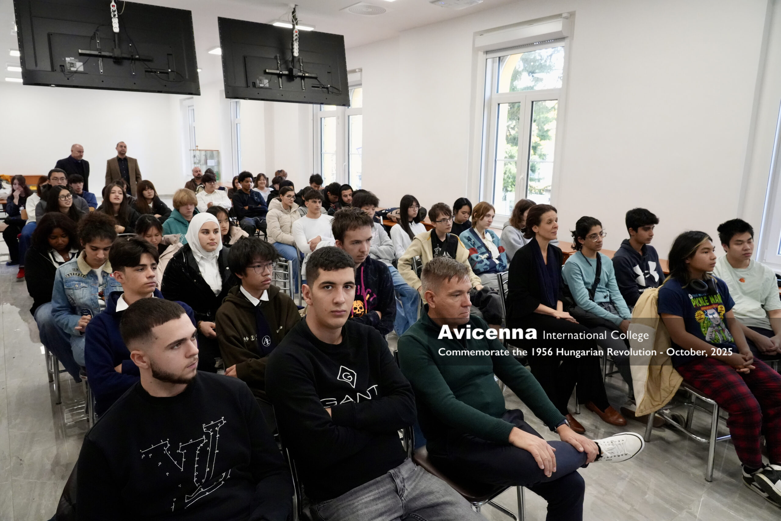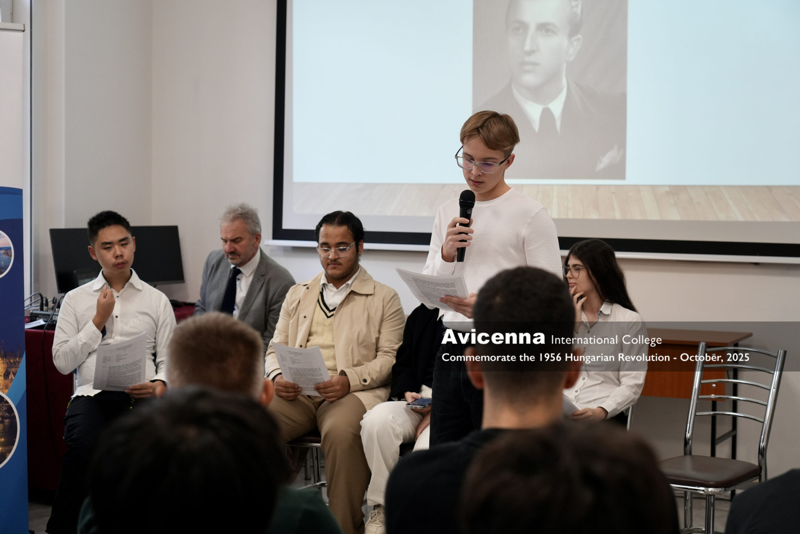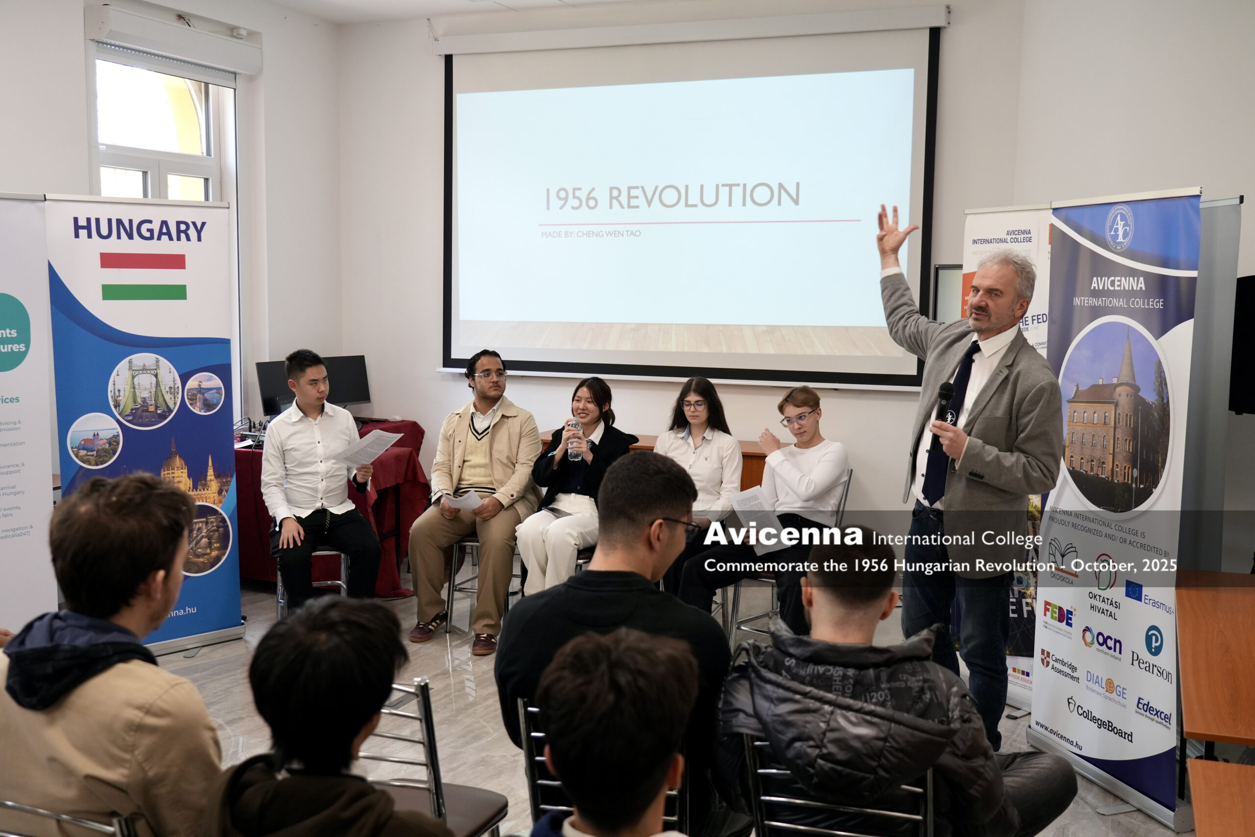Avicenna International School as every school in Hungary commemorated the 1956 revolution of Hungary on the 22nd of October. A short introduction with projection presented the historical context of the revolution. As AIC is closely related to the Semmelweis Medical University, the school brought closer the 1956 events to the students by the testimonies of three medical student and doctor heroes of the revolution. Sándor Puskás, a medical student was the first Budapest victim of the revolution, Dr. Vera Káldor was a young doctor healing the wounded and condamned for prison while being pregnant, and Thoma Dardeli, an Albanian medical student was sentenced for long years in Albania for his involvement in the Hungarian revolution. A talented student of the school presented a special song from 1956 (’Homesickness’) as a musical conclusion of the event.