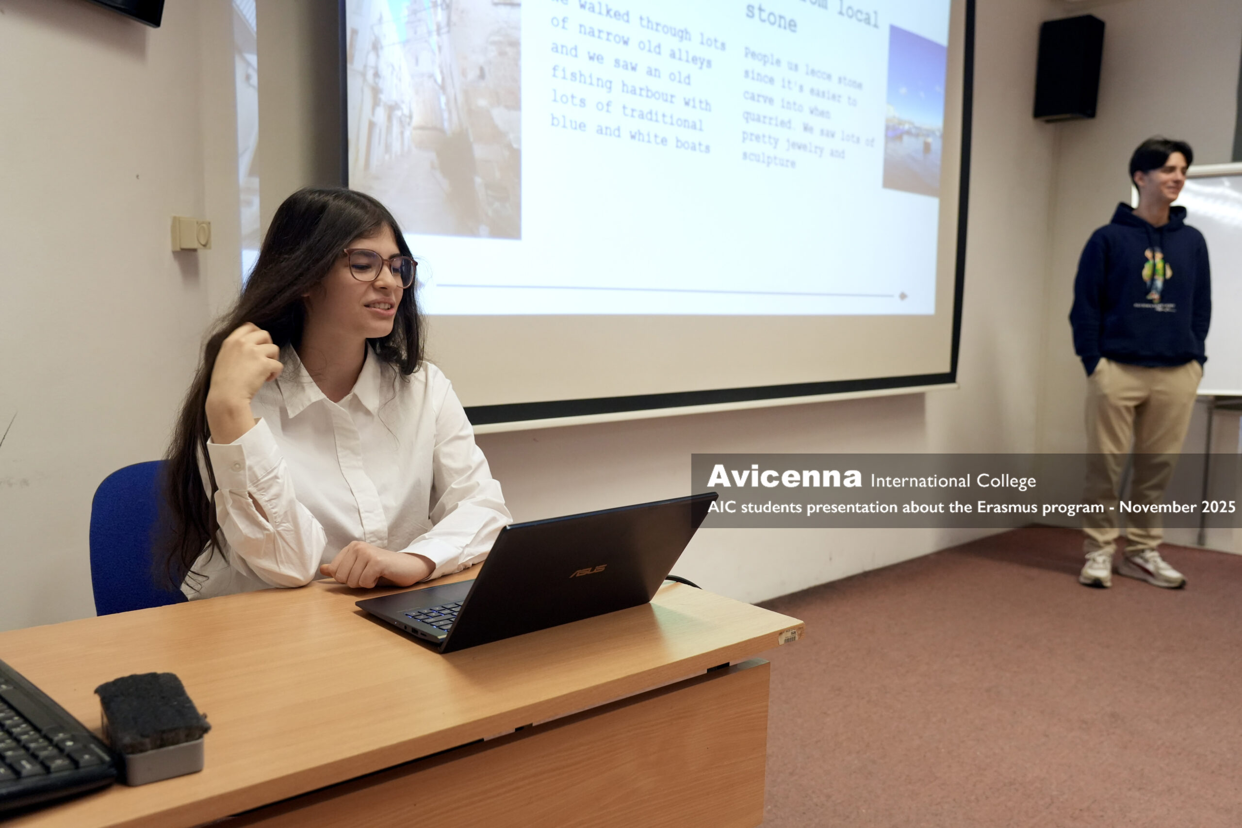 On 21 November, our two Erasmus groups delivered their official dissemination presentations-an essential requirement for completing their international mobility programmes. Each group prepared detailed PowerPoint slides and presented their experiences, academic achievements, and cultural impressions gained abroad. The presentations showcased not only the students’ communication skills but also their growth, confidence, and the lasting impact of the by now 5-year-old Erasmus tradition at Avicenna.