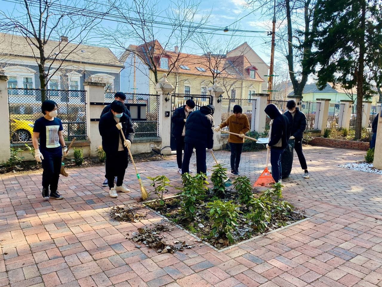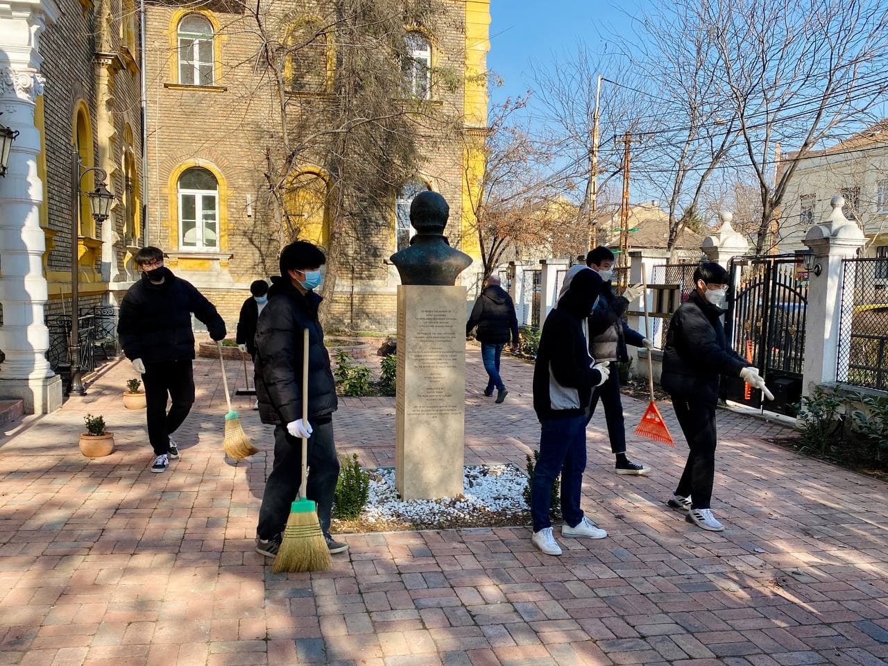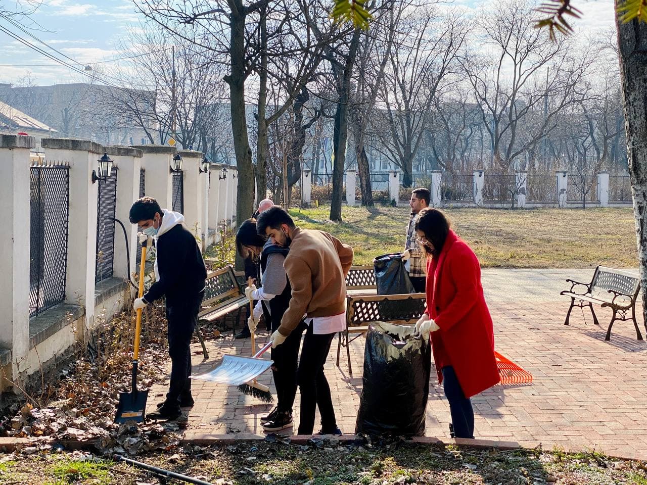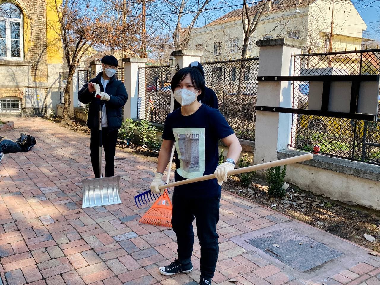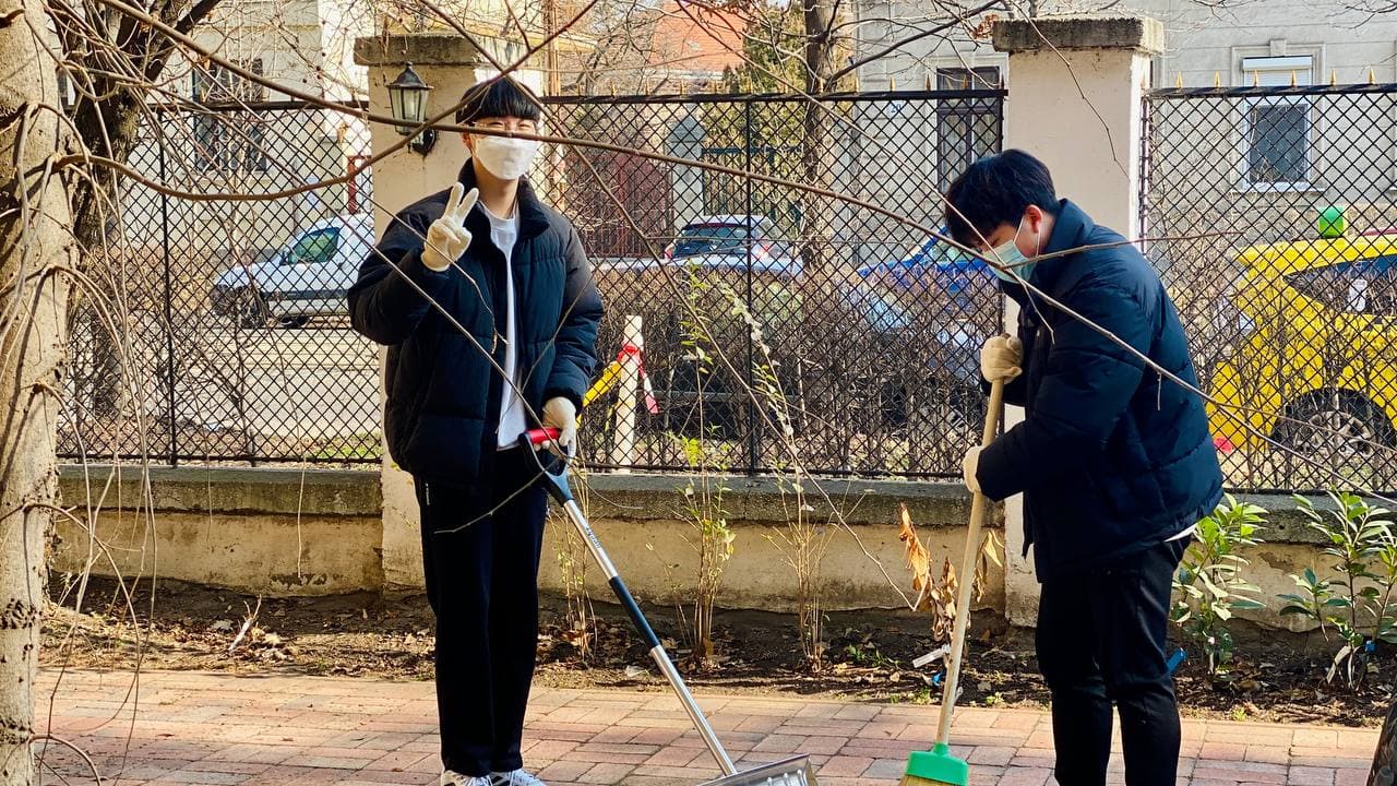On February 14th, Groups of AIC high school students participated in raking leaves and cleaning up the Schoolyard.