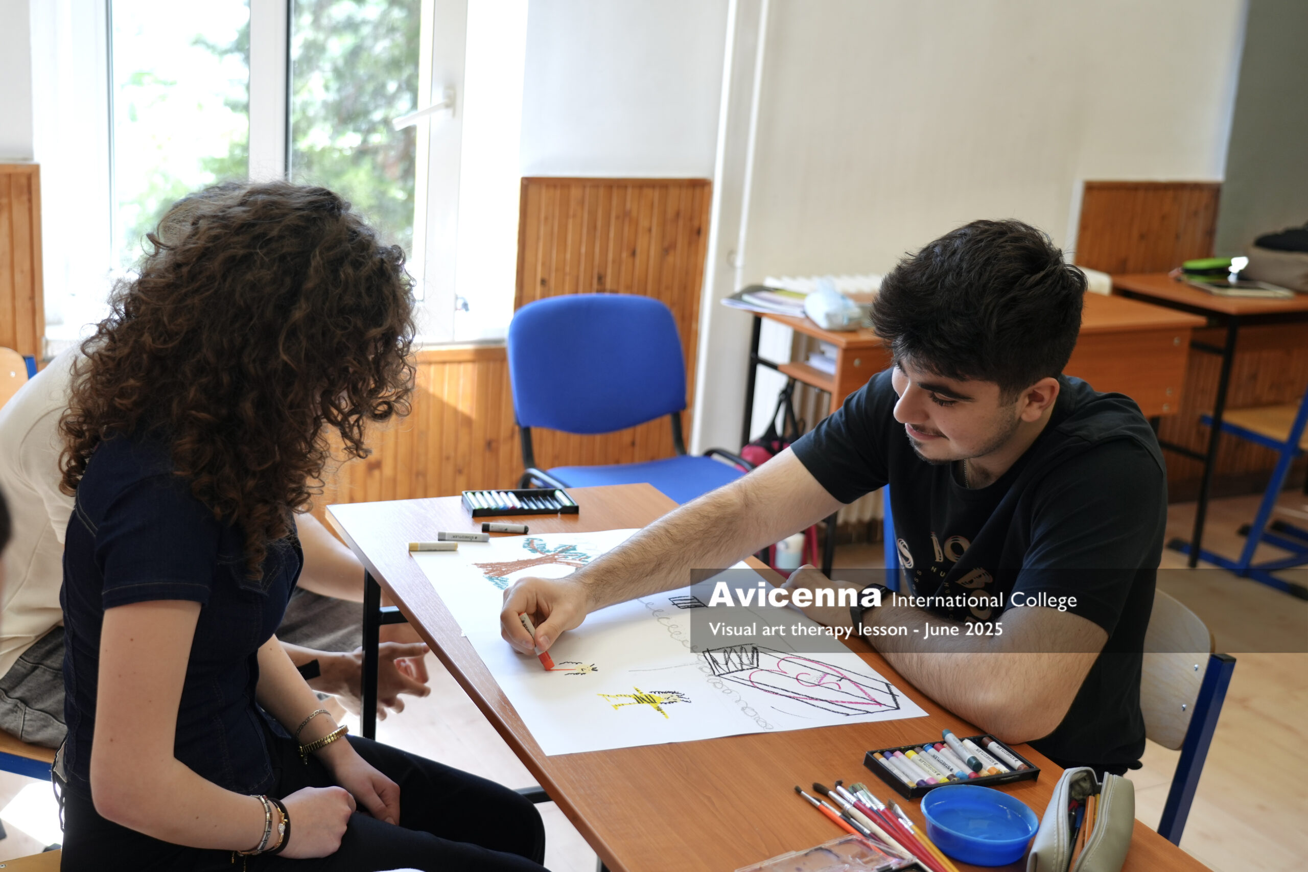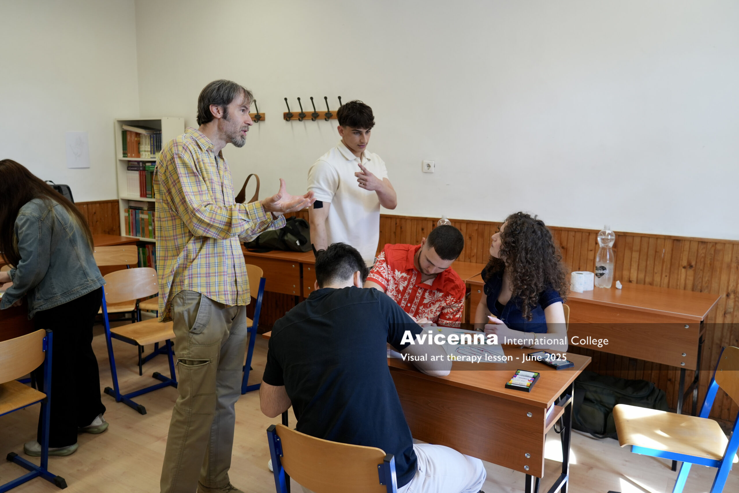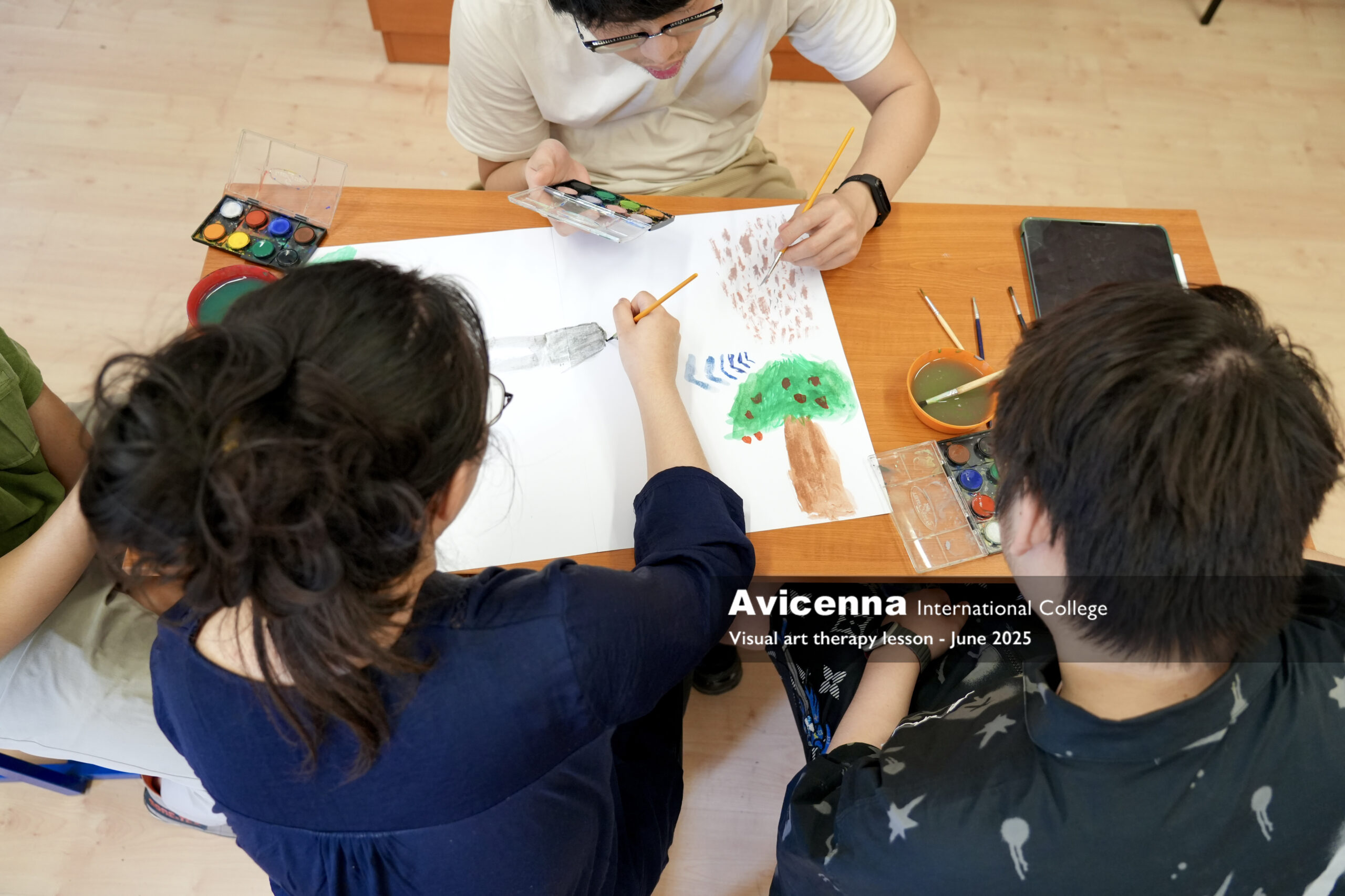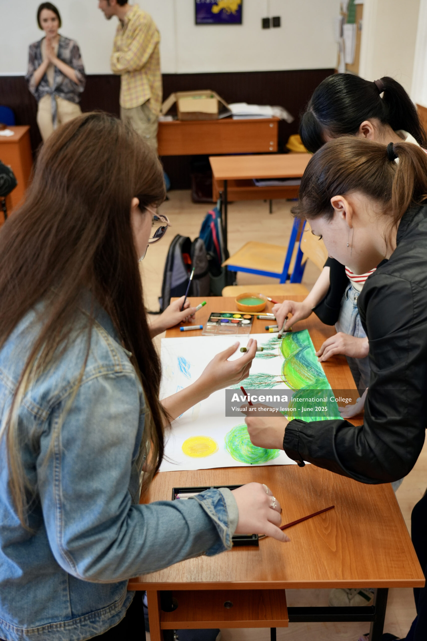 Other students were tasked with expressing the poetry through movement or dance, through music by singing melodies or tapping rhythms to match the mood, or through abstract brushstrokes and lines on a large piece of paper placed in the middle of the room. This was done in groups of three or four. I tried to encourage the more nervous students who volunteered to read, and I demonstrated different types of movement to help them convey emotions. I also played chords on the guitar for those who wanted to accompany the poetry with song. The art teacher provided supplies and offered support and guidance to students working with drawing materials. It was a difficult exercise for many of the students, and I had to gently push several of them just to complete the minimum. However, I was proud of those who still made the effort to participate, and for some, even trying was a meaningful step forward.