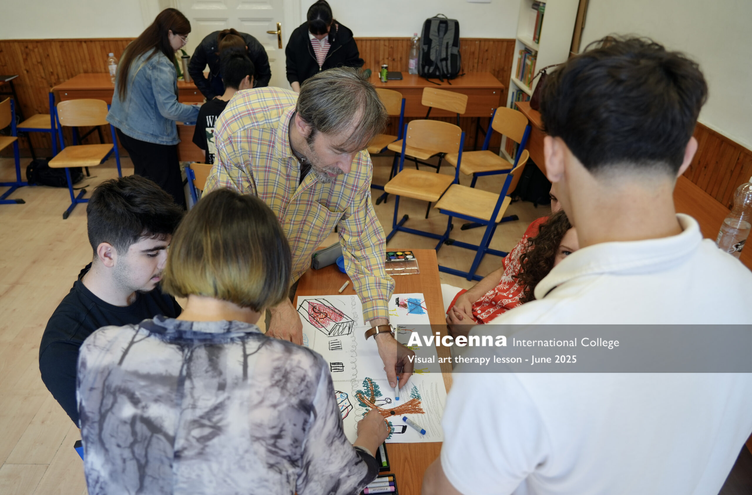 The music I selected had a specific purpose. The first track was from the movie Ruben Brandt, which features beautiful compositions paired with an imaginative world inspired by Picasso’s style. Before beginning their work, the students watched a scene from the movie where a live performance of Kis Kece Lányom by Ferenc Snétberger and Richard Bona plays in the background.